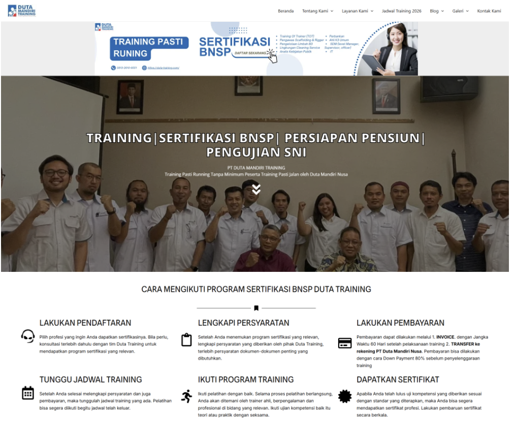 Sertifikat BNSP adalah investasi nyata untuk karier profesional Anda. Daftarkan diri Anda sekarang melalui duta-training.com atau hubungi kami langsung via WhatsApp 0813-2610-6551.